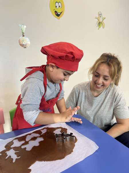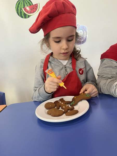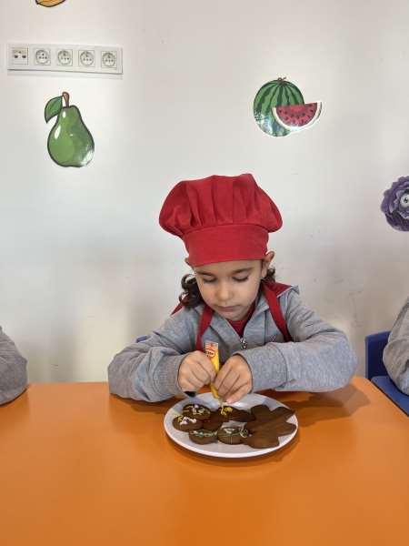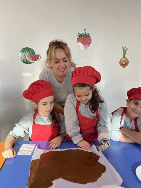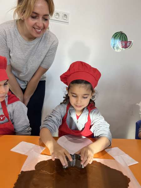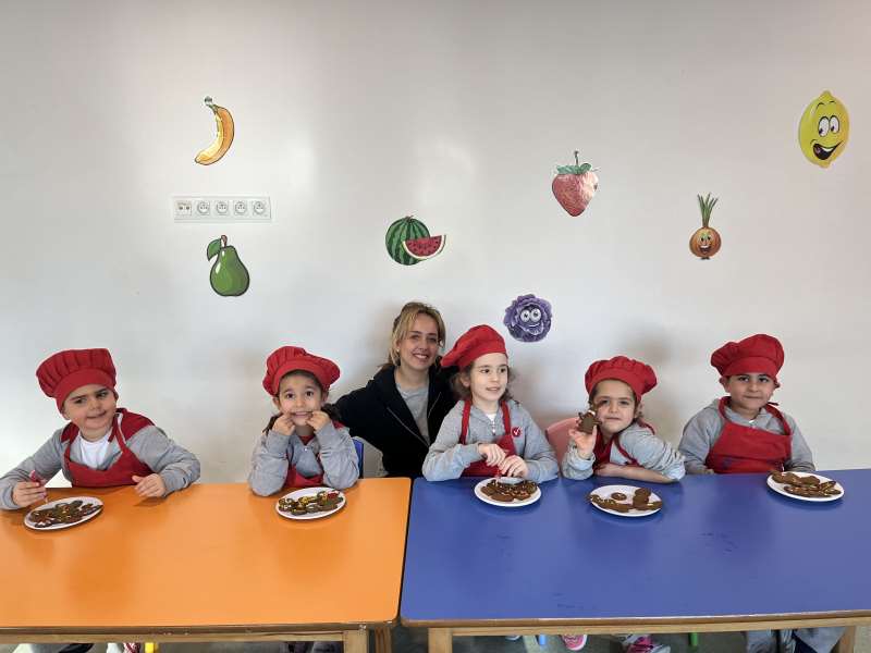 Ana sınıfı öğrencilerimiz, aile katılımı etkinliği kapsamında velimiz Derya Hanım ile birlikte kurabiye yaptı. Öğrencilerimiz; hamuru yoğururken, şekil verirken ve kurabiyelerin pişmesini sabırsızlıkla beklerken hem çok eğlendiler hem de birlikte üretmenin mutluluğunu yaşadılar.
