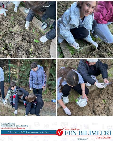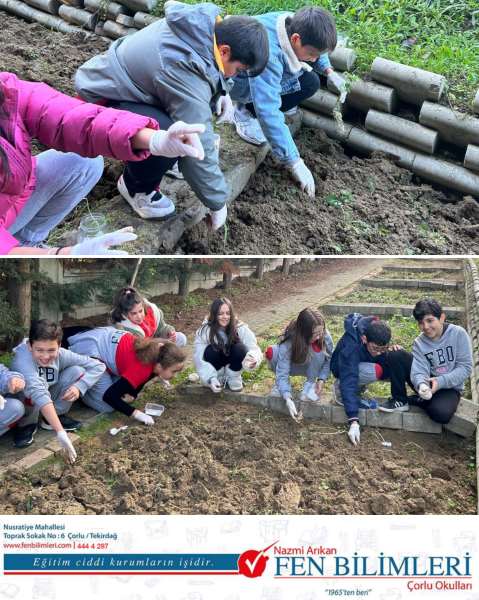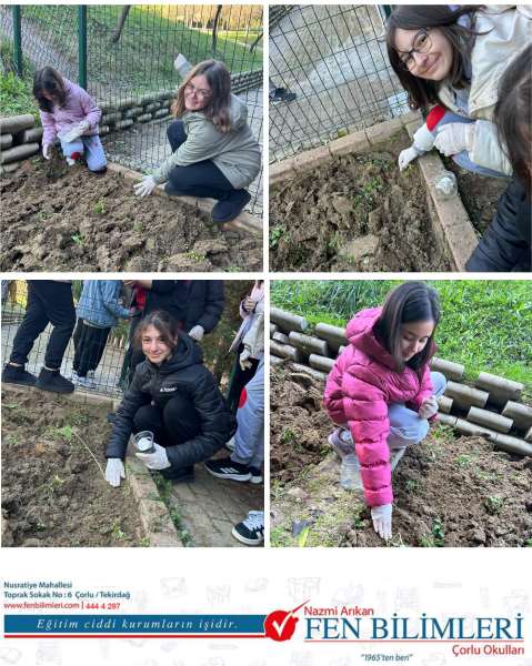 6. sınıf öğrencilerimizle çimlenme için gerekli şartları sağladık. Çimlenen tohumlarımızı toprakla buluşturduk. Dileriz hepsi kök salar toprağa. Unutmayalım ki ders sadece sınıfta değil. Doğayla, toprakla uğraşmak öğrencilerimiz için bambaşka tecrübe.