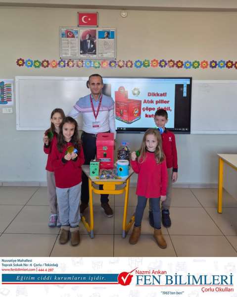 Sıfır Atık Projesi kapsamında atık pil toplama etkinliği yapan 2. sınıflarımız, topladıkları pilleri atık pil kutusuna koydular.