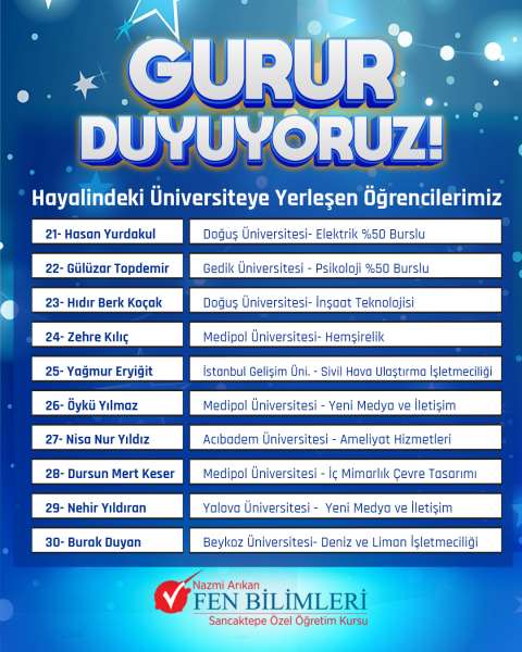 Hayallerine Kavuşan Öğrencilerimizle Gurur Duyuyoruz