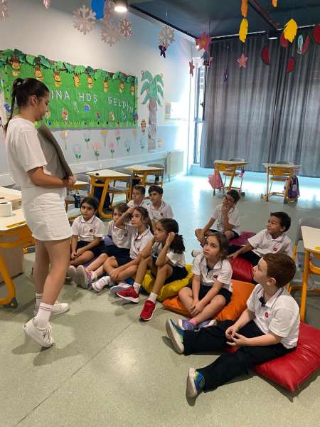 Anaokulu ve ilkokul öğrencilerimize rehberlik servisini tanıtmak amacıyla, okul psikoloğumuz İrem Cebesoy eşliğinde özel bir hikâye yolculuğuna çıktık. “Gökkuşağı Balığı ve Bilgiç Ahtapot” adlı hikâyeyi okuyup canlandırdık. Etkinlikte, Bilgiç Ahtapot’un arkadaşlarına çözüm yolları sunan, onları sabırla dinleyen ve yol gösteren yönü üzerinde durduk. Böylece öğrencilerimiz, rehberlik servisinin tıpkı Bilgiç Ahtapot gibi zorlandıklarında yanlarında olacak bir destek kaynağı olduğunu fark ettiler.
