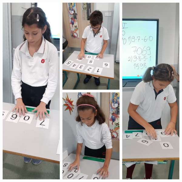4.sınıf öğrencilerimiz matematik dersinde gruplar halinde kendilerine verilen rakam setleri ile sorulan sorulara uygun doğal sayıları oluşturdular. Bu etkinlikle verilen yönergeye uygun 4, 5 ve 6 basamaklı sayıları oluşturarak keyifli zaman geçirdiler.