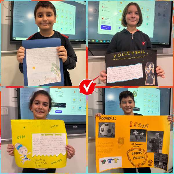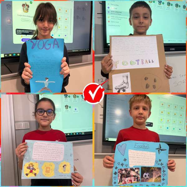 Öğrencilerimiz, ünite kazanımları kapsamında en sevdikleri sporları ve aktiviteleri tanıttıkları birbirinden renkli posterler hazırladılar. Hem yaratıcılıklarını konuşturdular hem de sınıf arkadaşlarına sunum yaparak iletişim becerilerini geliştirme fırsatı buldular.